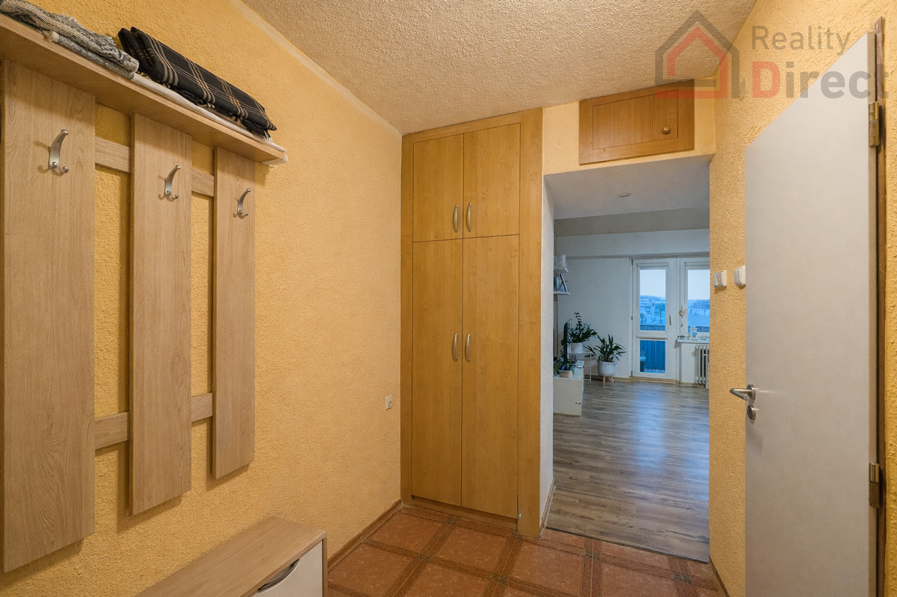 Byt se pronajímá plně vybavený – stačí se jen nastěhovat. Součástí je sedací souprava, jídelní stůl se židlemi, TV se sestavou, kompletně zařízená kuchyňská linka včetně spotřebičů a vybavená ložnice. V bytě je dostatek úložných prostor včetně šatních skříní na chodbě.