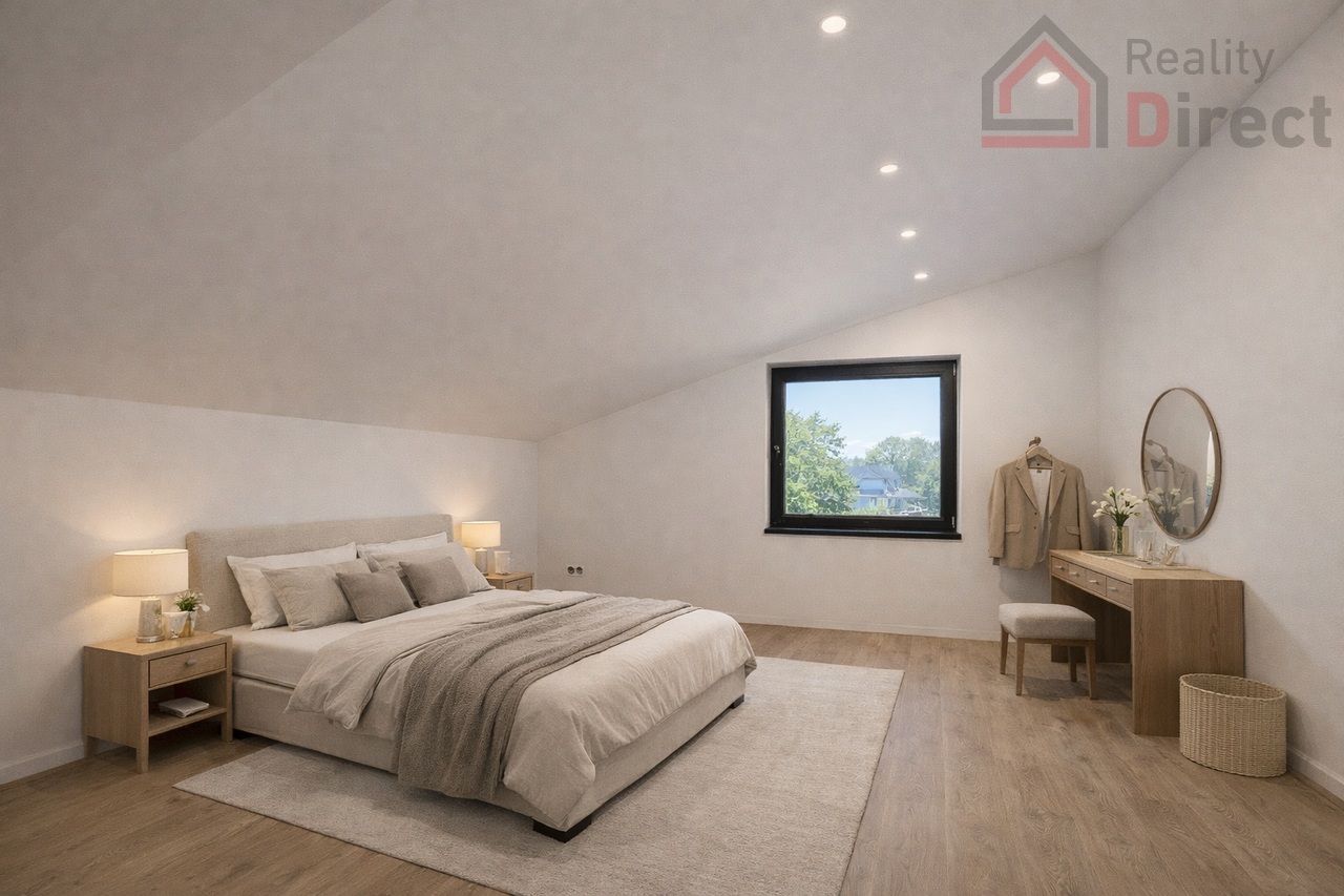 Nabízíme k pronájmu moderní mezonetový byt o dispozici 3+kk a celkové podlahové ploše 96 m2 v Mnichově Hradišti. Byt je řešen jako mezonet a nabízí promyšlenou dispozici se dvěma samostatnými ložnicemi, přičemž každá z nich má vlastní koupelnu. Toto řešení zajišťuje maximální komfort a soukromí – ideální pro pár, rodinu nebo dvě osoby sdílející bydlení bez kompromisů.
